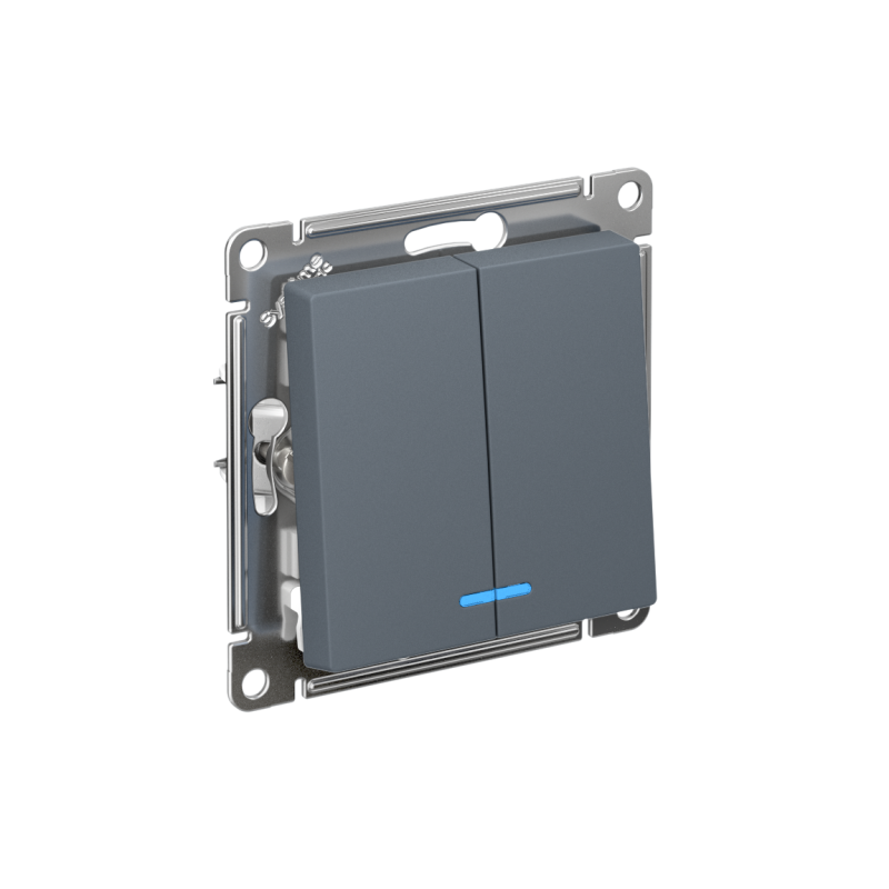 - Двухклавишный выключатель позволяет управлять двумя источниками света с одной точки.